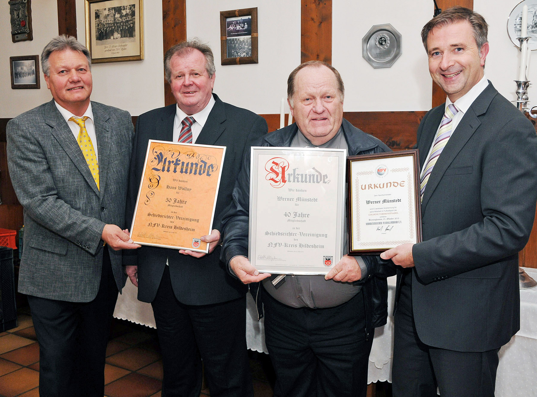 Für 40-jährige Mitgliedschaft wurden Werner Münstedt (TuS Hoheneggelsen), Gerhard Ruppelt (SV Wülfingen), Klaus Wesche (TSV Brüggen) und für 50-jährige Zugehörigkeit wurde Hans Wollny (SV Hildesia Diekholzen) geehrt.